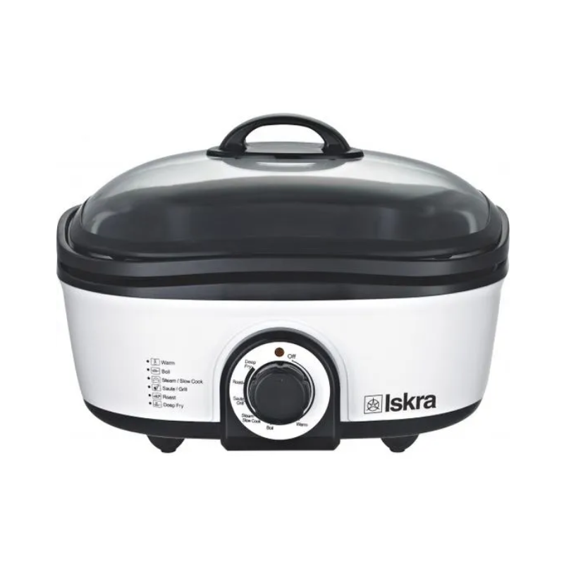 Višenamjensko kuhalo/friteza Iskra HP-MT01 je vrlo praktičan dodatak koji će naći mjesto u svakoj kuhinji. Omogućava čak 8 različitih načina pripreme hrane, a sve u jednom uređaju. Omogućava zagrijavanje, vrenje, kuhanje na paru, polako kuhanje, prženje, roštilj, pečenje i pohanje. Sve to omogućava jak grijač snage 1400 W, kojeg možete kontrolirati preko višenamjenskog gumba za podešavanje temperature.